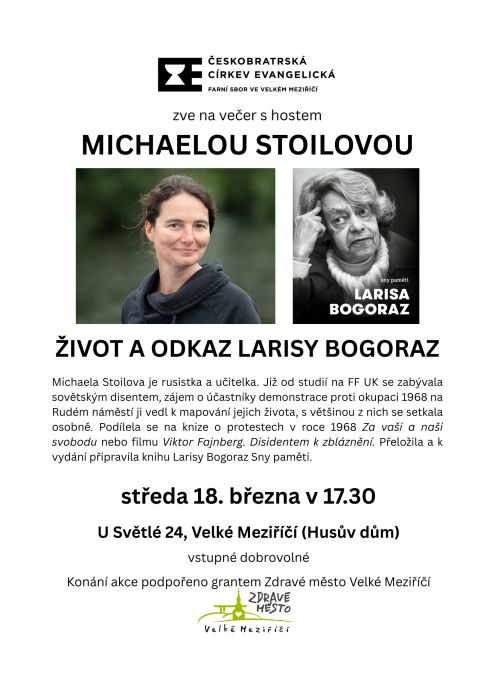 Českobratrská církev evangelická zve na večer s hostem Michaelou Stoilovou, rusistkou a učitelkou.
