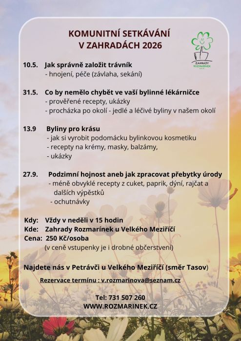 Na přednášku je nutné zarezervovat termín. Cena 250 Kč/osoba. V ceně je i drobné občerstvení.